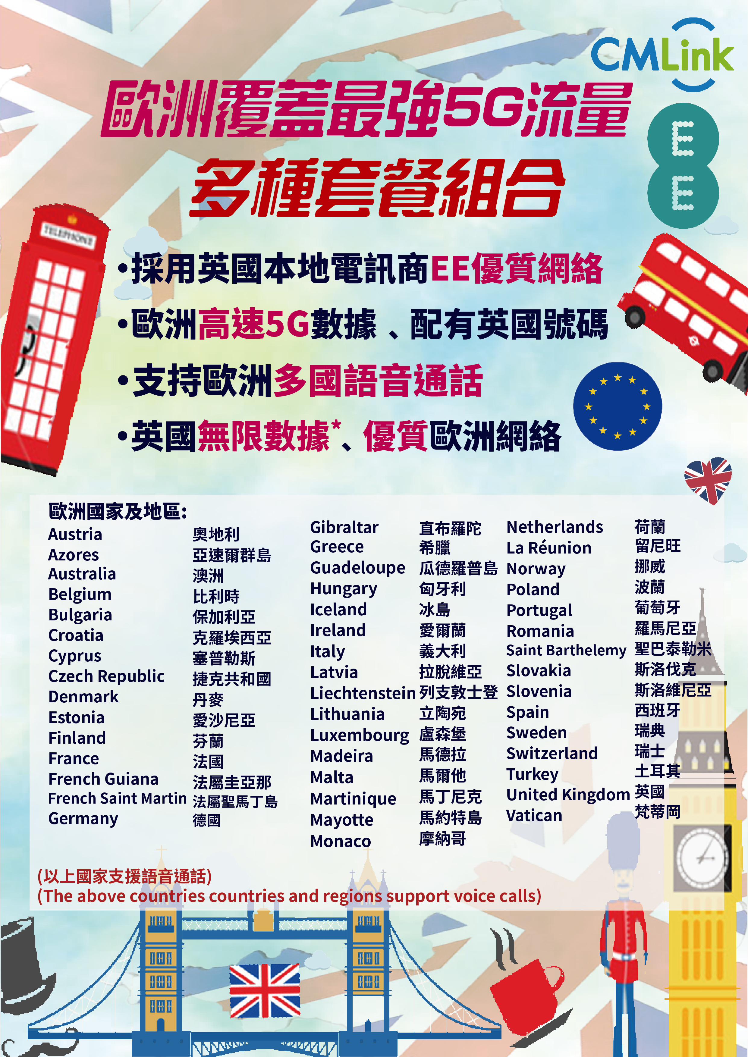-適用於共46個歐洲國家地區, 46個國家支持通話